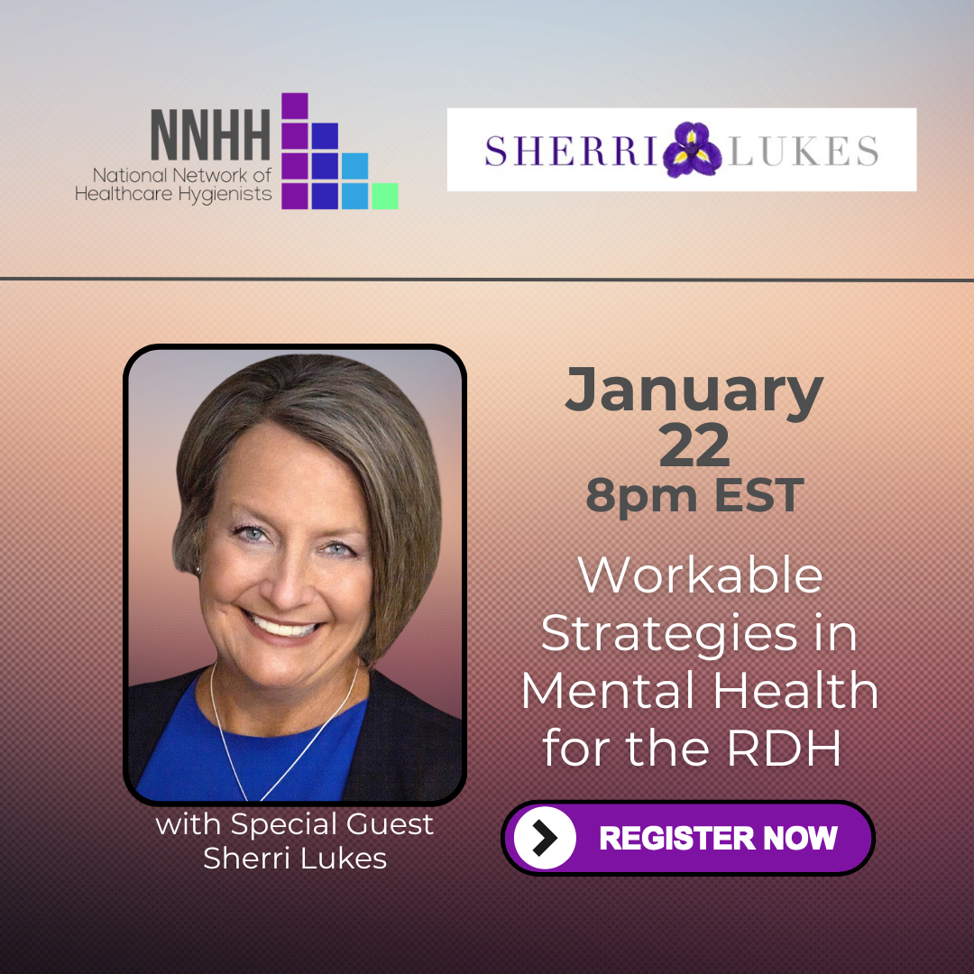 A large proportion of dental hygiene patients suffer with mental health issues which in turn affect their oral health. Evidence concerning mental health issues and how patients and dental professionals are affected will be discussed in this live session, along with signs and symptoms of the most common conditions of anxiety and depression. Management and treatment strategies will be covered, including proactive approaches for suicide prevention. The key takeaways from this session can be utilized in patient care and for achieving whole body health in ourselves.
